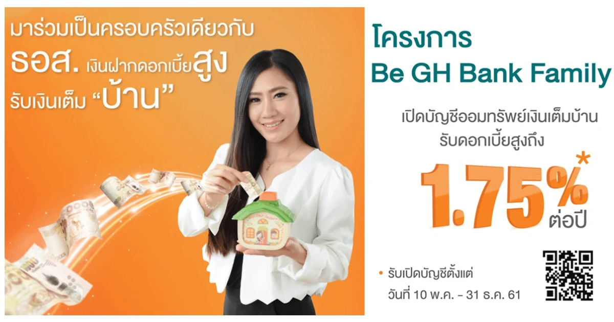 บัญชีเงินฝากออมทรัพย์เงินเต็มบ้าน โครงการ Be GH Bank Family... ธนาคารอาคารสงเคราะห์