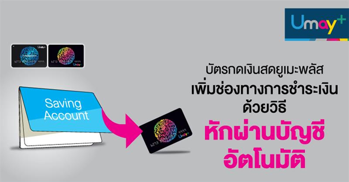 บัตรกดเงินสดยูเมะพลัส เพิ่มช่องทางการชำระเงินด้วยวิธีหักผ่านบัญชีอัตโนมัติ