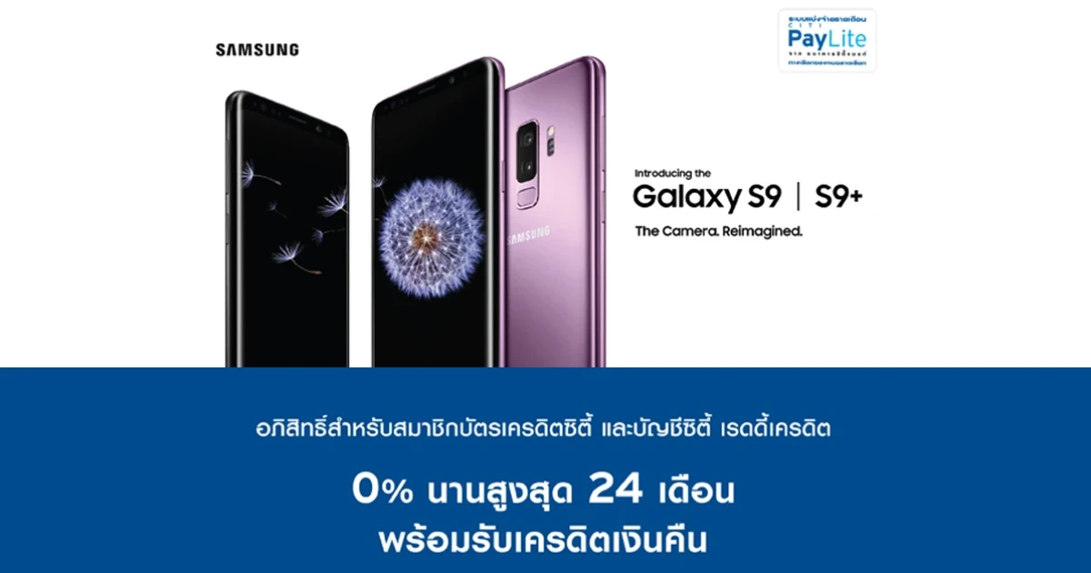 ผ่อน Samsung Galaxy S9/S9+ 0% นานสูงสุด 24 เดือน พร้อมเครดิตเงินคืน จากบัญชีซิตี้ เรดดี้เครดิต