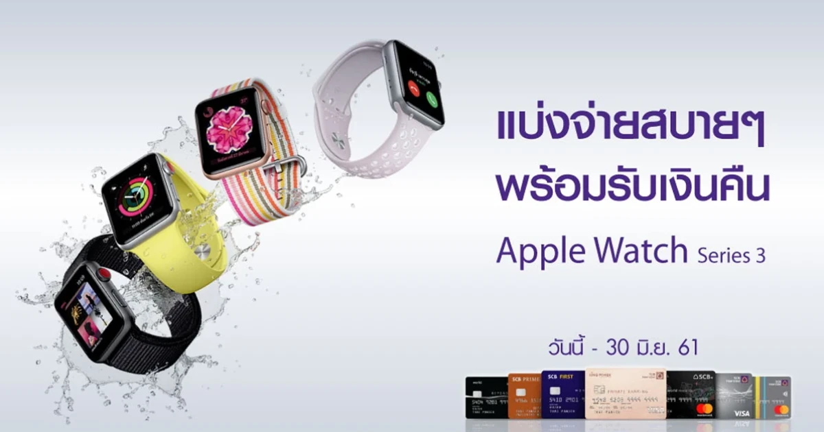 Apple Watch Series 3 แบ่งจ่ายสบายๆ 0% นาน 10 เดือน พร้อมรับเงินคืนสูงสุด 20% จากบัตรเครดิต SCB