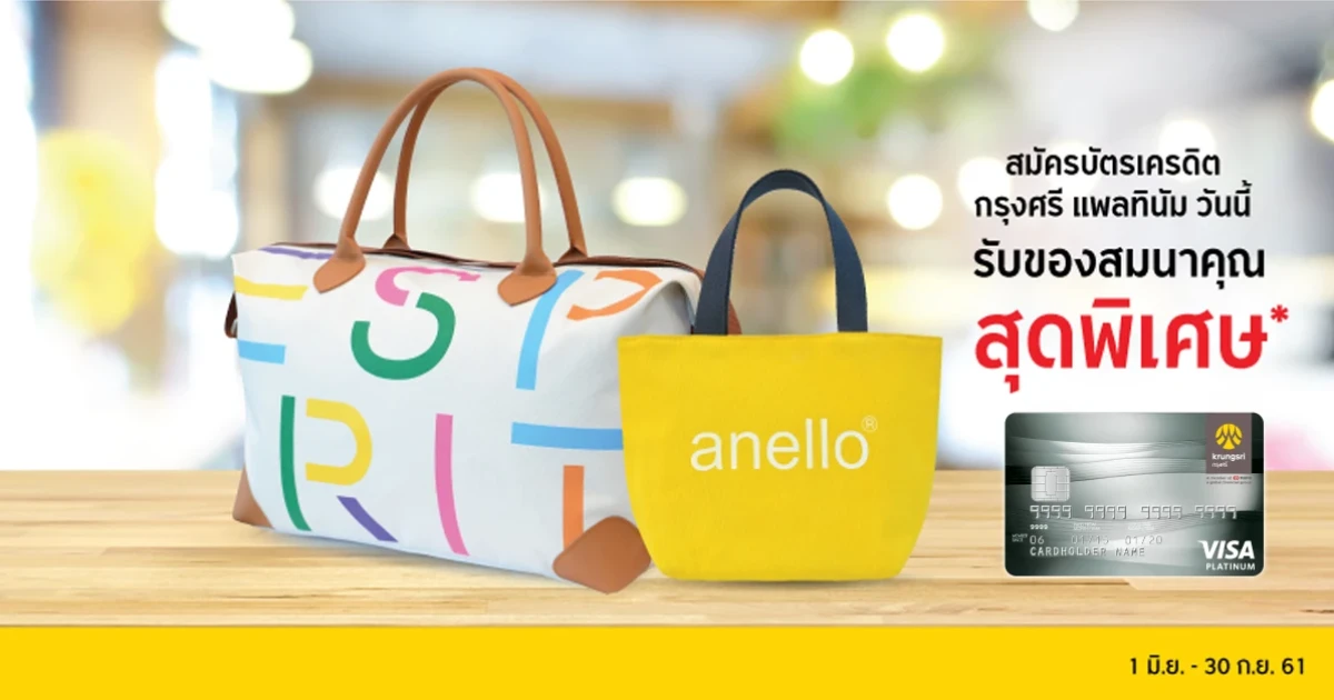 สมัครบัตรเครดิตกรุงศรี แพลทินัม วันนี้! รับกระเป๋า ESPRIT และกระเป๋า anello มูลค่าสูงสุด 2,090 บาท