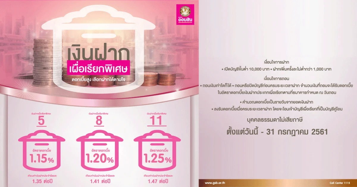เงินฝากเผื่อเรียกพิเศษ จากธนาคารออมสิน ดอกเบี้ยสูง เลือกฝากได้ตามใจ