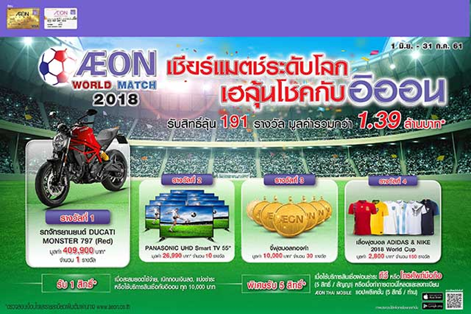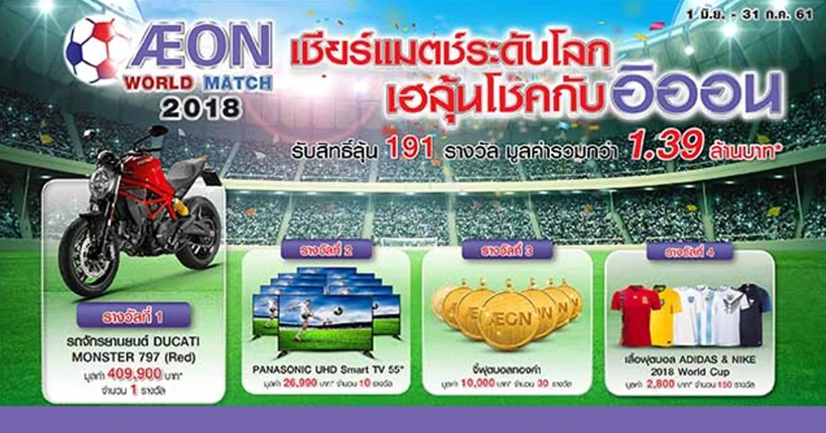 เชียร์แมตช์ระดับโลก เฮลุ้นโชคกับอิออน รับสิทธิ์ลุ้น 191 รางวัล มูลค่ารวมกว่า 1.39 ล้านบาท
