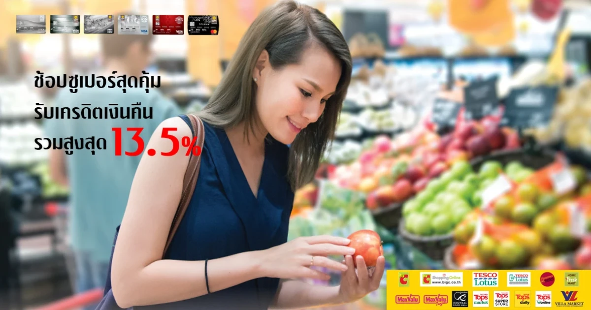 ยิ่งช้อป ยิ่งคุ้ม รับเครดิตเงินคืนรวมสูงสุด 13.5% ที่ Hyper/ Supermarket จากบัตรเครดิตกรุงศรี