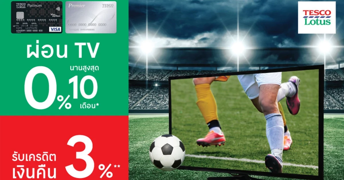 - บัตรสินเชื่อเทสโก้ โลตัส พรีเมียร์ผ่อนชำระอัตราดอกเบี้ย 0% นาน 6หรือ10 เดือน เฉพาะทีวีรุ่นที่ร่วมรายการที่แผนกเครื่องใช้ไฟฟ้าเทสโก้ โลตัส เท่านั้น
