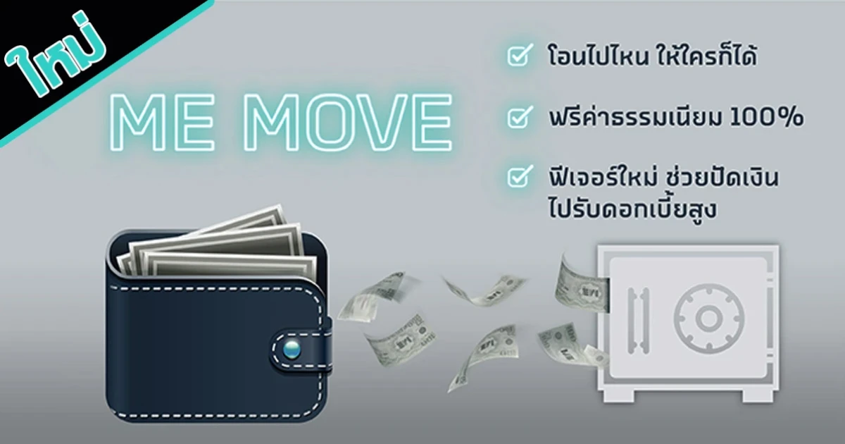 บัญชีเงินฝาก ME MOVE เป็นบัญชีเงินฝากเพื่อการทำธุรกรรม ให้คุณมีอิสระในการทำธุรกรรมมากขึ้น โอนไปไหนให้ใครก็ได้ ฟรีค่าธรรมเนียม 100% มาพร้อมฟีเจอร์ใหม่ ช่วยปัดเงินไปรับดอกเบี้ยสูงในบัญชี ME SAVE ง่ายๆ ผู้ใช้บริการต้องมีบัญชี ME SAVE อยู่ก่อนแล้วจึงจะสามารถใช้บัญชี ME MOVE ได้