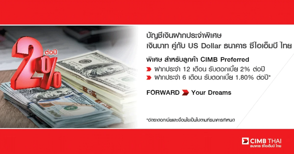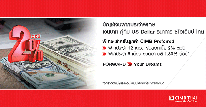 บัญชีเงินฝากประจำพิเศษ 6, 12 เดือน เงินบาทคู่กับ US Dollar - ธ.ซีไอเอ็มบี ไทย
