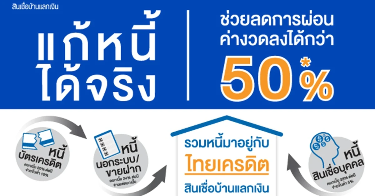 รวมหนี้มาอยู่กับไทยเครดิต สินเชื่อบ้านแลกเงิน แก้หนี้ได้จริง ช่วยลดการผ่อนค่างวดลงได้กว่า 50%