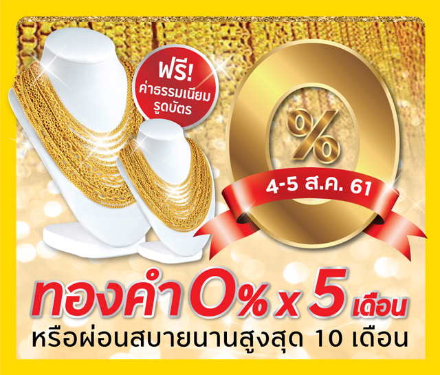 - บริษัทฯ ขอสงวนสิทธิ์ในการแบ่งจ่าย 0% นาน 5 เดือน เฉพาะการแบ่งจ่ายทองคำรูปพรรณเท่านั้น