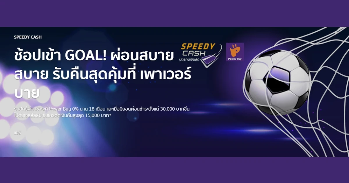 ช้อปเข้า GOAL! ผ่อนสบายสบาย รับคืนสุดคุ้มที่ เพาเวอร์บาย สิทธิพิเศษจากบัตร Speedy Cash