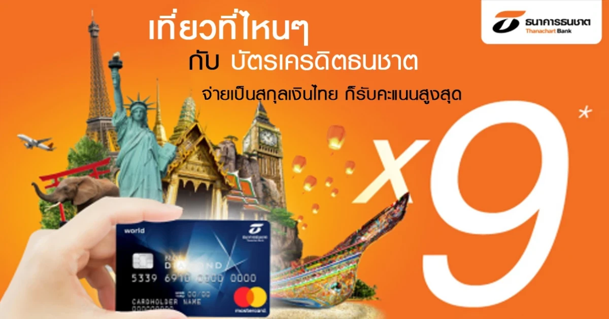 เที่ยวที่ไหนๆ ก็คุ้ม! รับคะแนนสะสมรวมสูงสุด X9 เมื่อใช้จ่ายในหมวดท่องเที่ยว และหมวดโรงแรม ผ่านบัตรเครดิตธนชาต (เป็นสกุลเงินบาทไทย)
