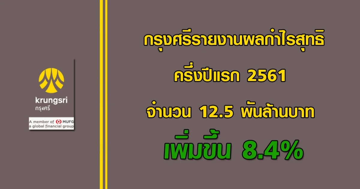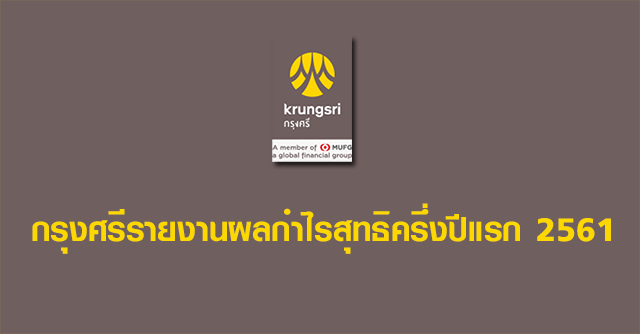 กรุงศรีรายงานผลกำไรสุทธิครึ่งปีแรก 2561 จำนวน 12.5 พันล้านบาท เพิ่มขึ้น 8.4%