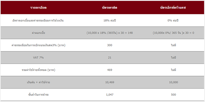 สำหรับจำนวนเงินที่เบิกถอน 10,000 บาท/ระยะเวลา 30 วัน