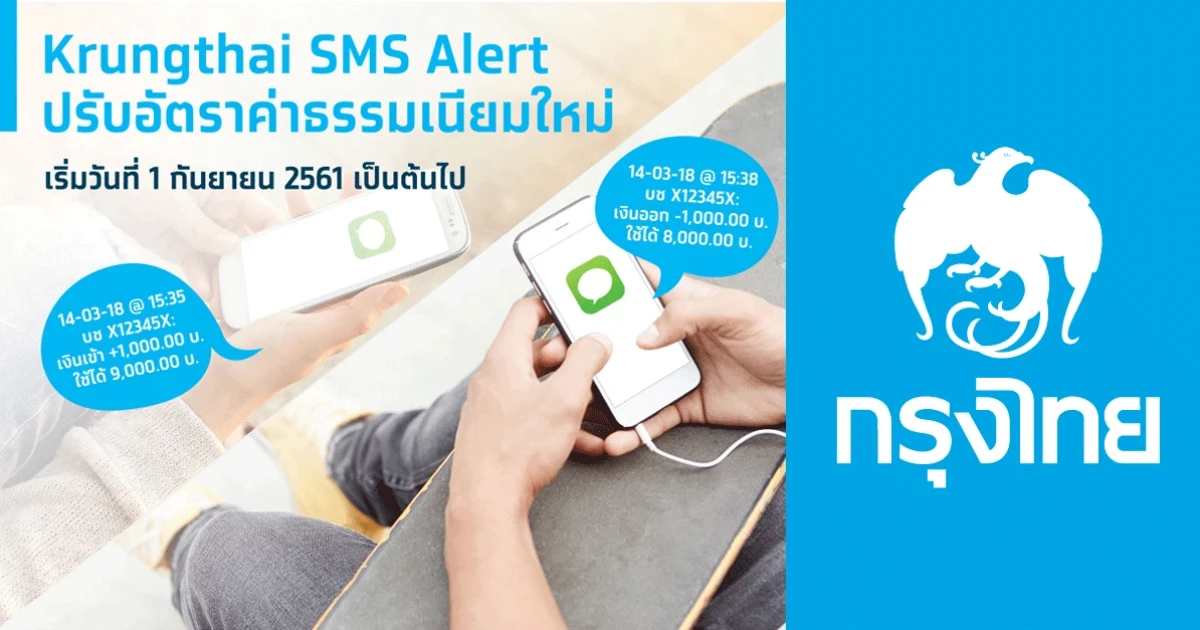 Krungthai SMS Alert ปรับอัตราค่าธรรมเนียมใหม่ 1 กันยายน 2561 เป็นต้นไป