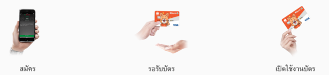 - เปิดใช้งานบัตร เพียงนำบัตรไปที่ตู้ ATM เปลี่ยนรหัสผ่าน แล้วใช้งานได้ทันที