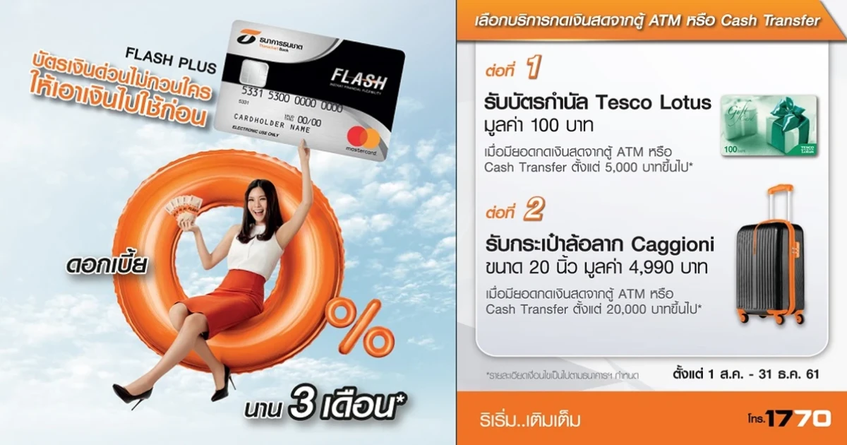 เงื่อนไขสำหรับโปรโมชั่นบัตรสินเชื่อบุคคลธนชาต FLASH Plus