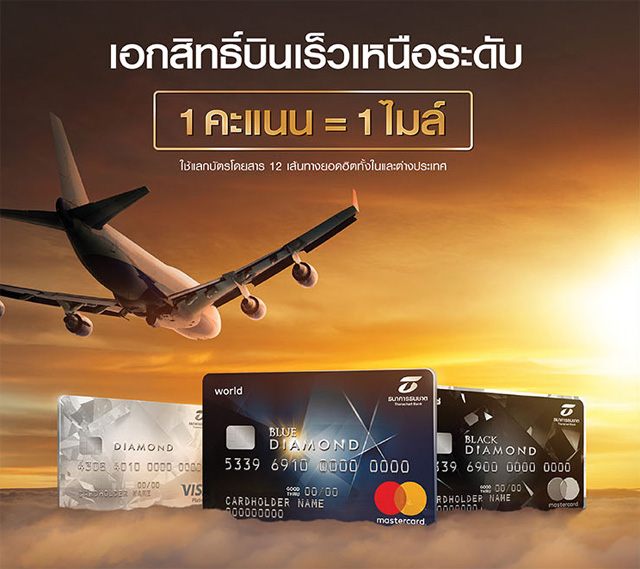 เอกสิทธิ์บินเร็วเหนือระดับ 1 คะแนน = 1 ไมล์ ใช้แลกบัตรโดยสาร 12 เส้นทางยอดฮิตทั้งในและต่างประเทศ สิทธิพิเศษจากบัตรเครดิตธนชาต
