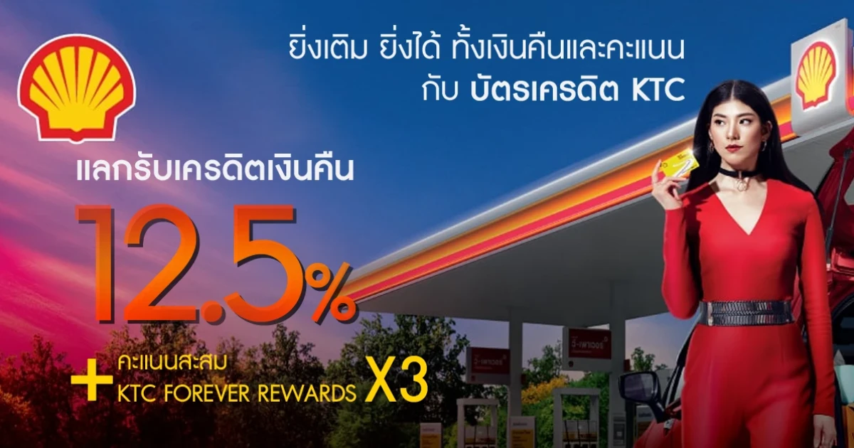 ยิ่งเติม ยิ่งได้ ทั้งเครดิตเงินคืนสูงสุด 12.5% และคะแนนสะสม X3 ที่ปั๊ม Shell ด้วยบัตรเครดิต KTC