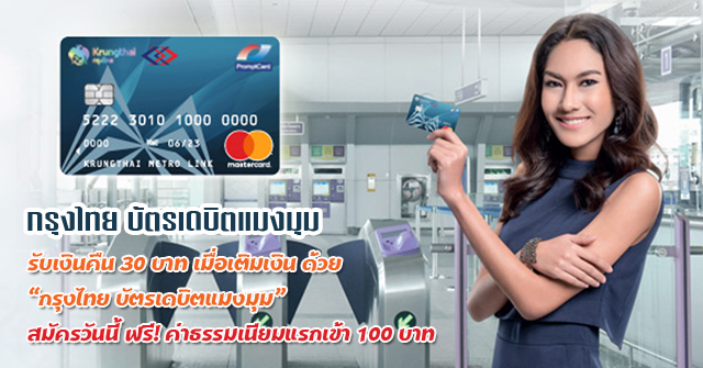 รับเงินคืน 30 บาท เมื่อเติมเงิน 300 บาท ด้วยกรุงไทย บัตรเดบิตแมงมุม สมัครวันนี้ ฟรี! ค่าธรรมเนียมแรกเข้า