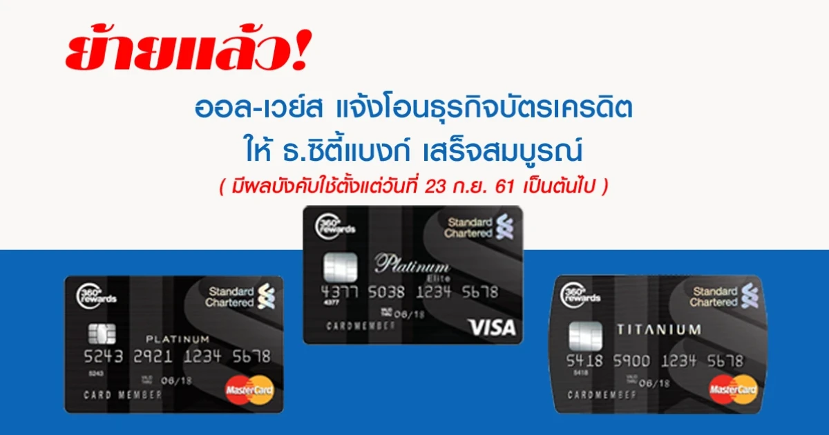 ย้ายแล้ว! ออล-เวย์ส แจ้งโอนธุรกิจบัตรเครดิตให้ ธ.ซิตี้แบงก์ เสร็จสมบูรณ์ มีผลตั้งแต่ 23 ก.ย. 61 เป็นต้นไป