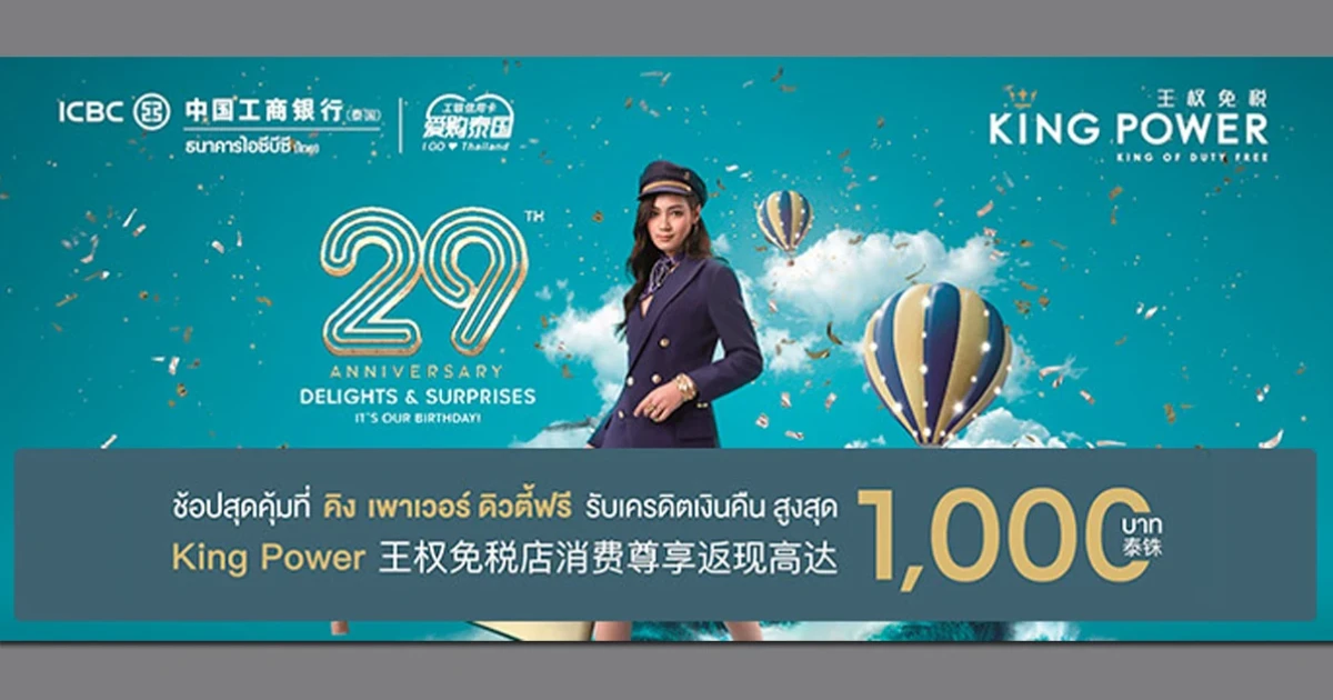 สมาชิกบัตรเครดิตไอซีบีซี ไทย รับเครดิตเงินคืนสูงสุด 1,000 บาท ที่คิงเพาเวอร์ ดิวตี้ฟรี