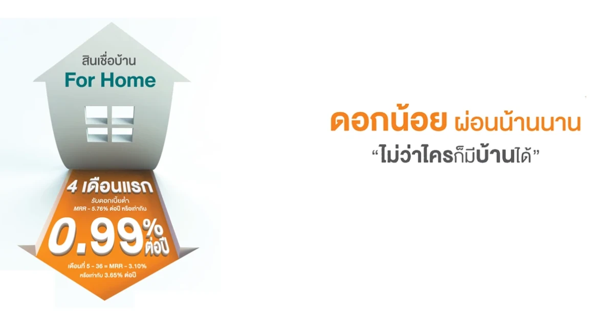 สินเชื่อบ้าน For Home ดอกน้อย ผ่อนน้านนาน...ไม่ว่าใครก็มีบ้านได้