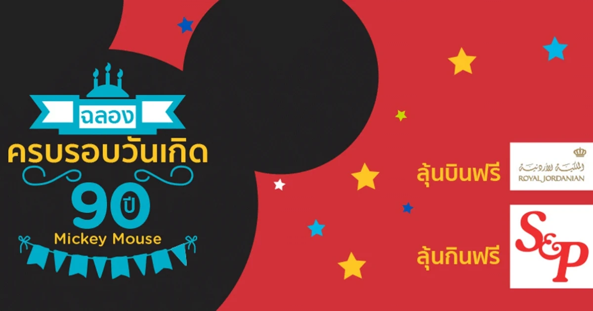 Hong Kong Disneyland ฉลองครบรอบวันเกิด 90 ปี "มิกกี้ เม้าส์" ลุ้นบินฟรีฮ่องกง หรือ กินฟรี S&P