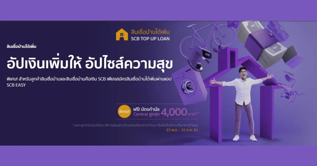 รับฟรี! บัตรกำนัล Central สูงสุด 4,000 บาท เมื่อสมัครสินเชื่อบ้านได้เพิ่ม ผ่านแอปฯ SCB EASY