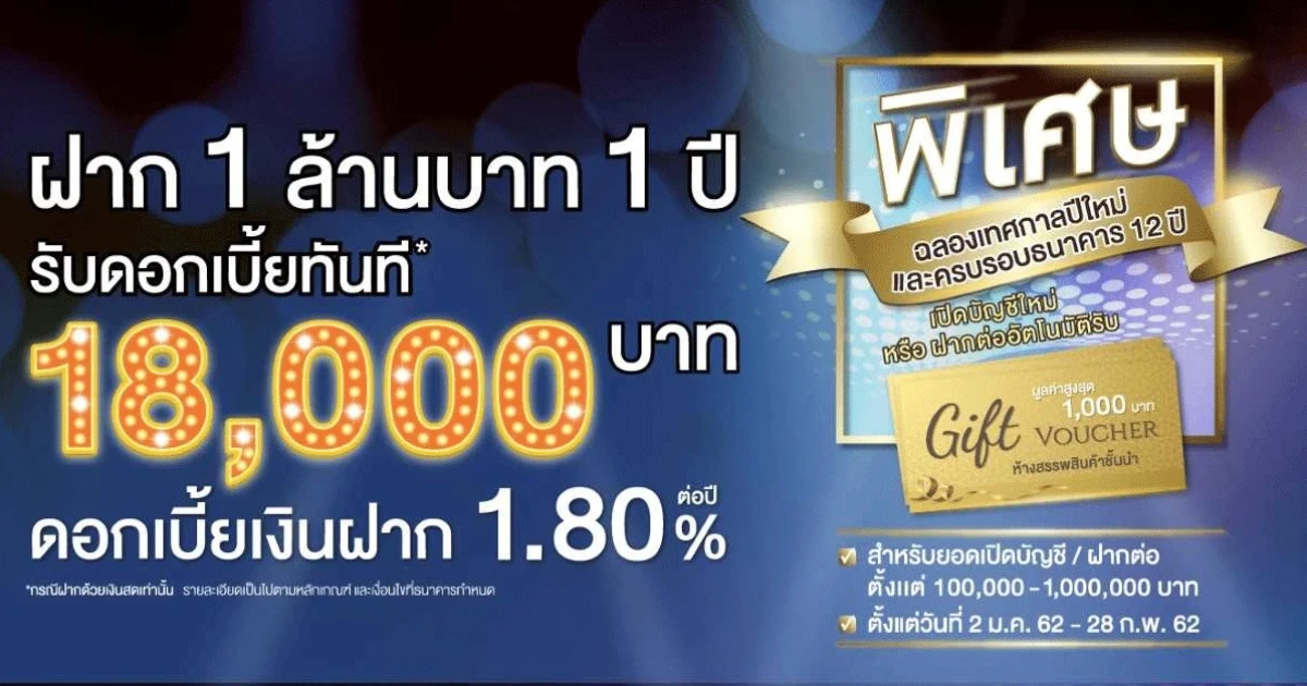 โปรโมชั่นเปิดบัญชีใหม่ หรือฝากต่อ บัญชีออมทรัพย์เพิ่มค่าทันใจ รับ Gift Voucher สูงสุด 1,000 บาท