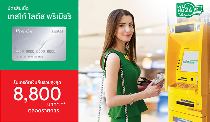 เงินสด กดได้ทันใจ พร้อมเงินคืนสูงสุด 8,800 บาท จากบัตรสินเชื่อเทสโก้ โลตัส พรีเมียร์