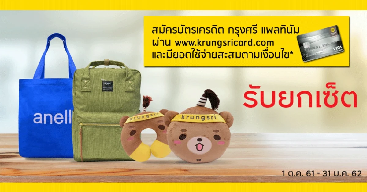 สมัคร บัตรเครดิตกรุงศรี แพลทินัม วันนี้... รับของสมนาคุณยกเซ็ต และรับเพิ่ม เซ็ตหมอนหมีกินจุง