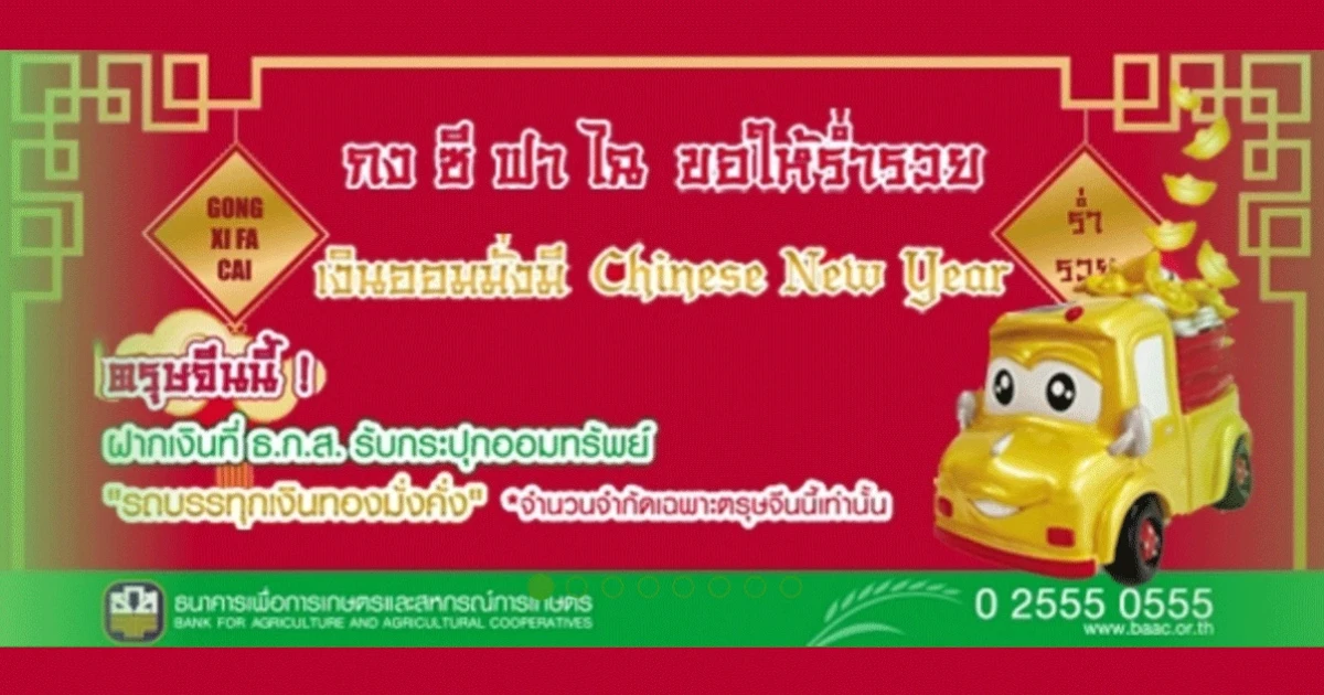 เงินฝาก Chinese New Year ปี 2562 จาก ธ.ก.ส. เงินออมมั่งมี แจกกระปุกออมทรัพย์ รถบรรทุกเงินทองมั่งคั่ง