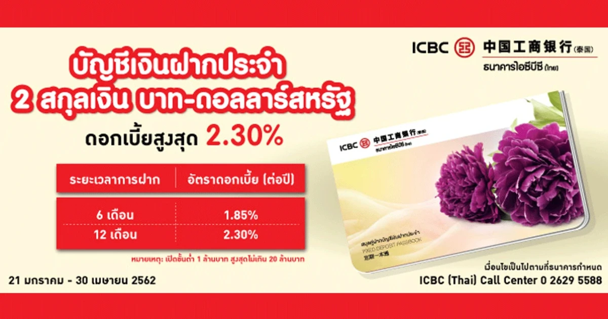 บัญชีเงินฝากประจำ Baht - Dollar - ธ.ไอซีบีซี (ไทย)