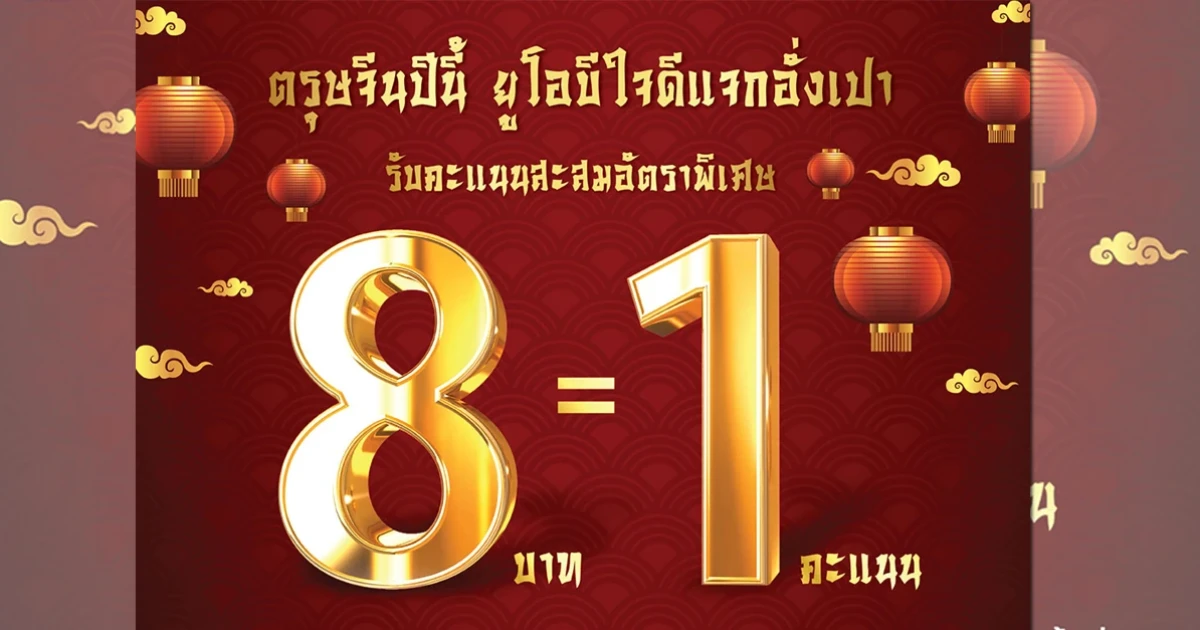 ตรุษจีนปีนี้ ยูโอบีใจดีแจกอั่งเปา รับคะแนนสะสมอัตราพิเศษ 8 บาท = 1 คะแนน