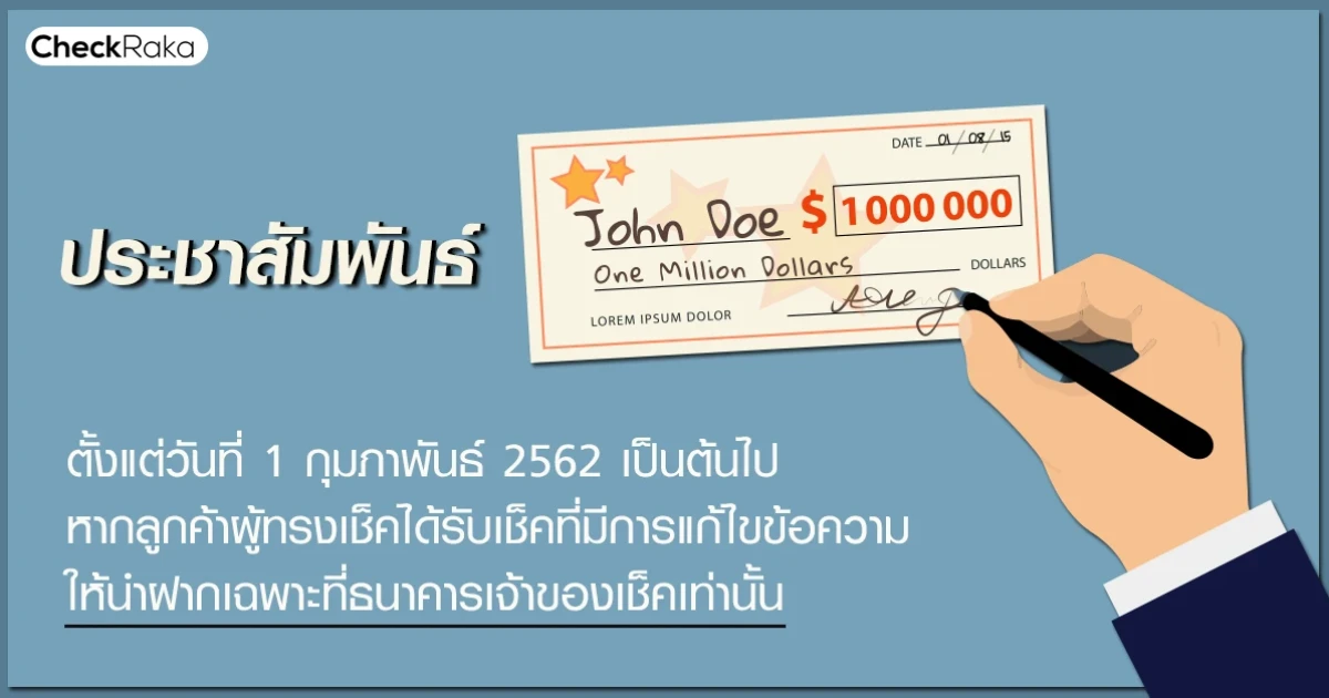 ประชาสัมพันธ์ กรณีเช็คที่มีการแก้ไขข้อความ ให้นำฝากที่สาขาเจ้าของเช็คเท่านั้น