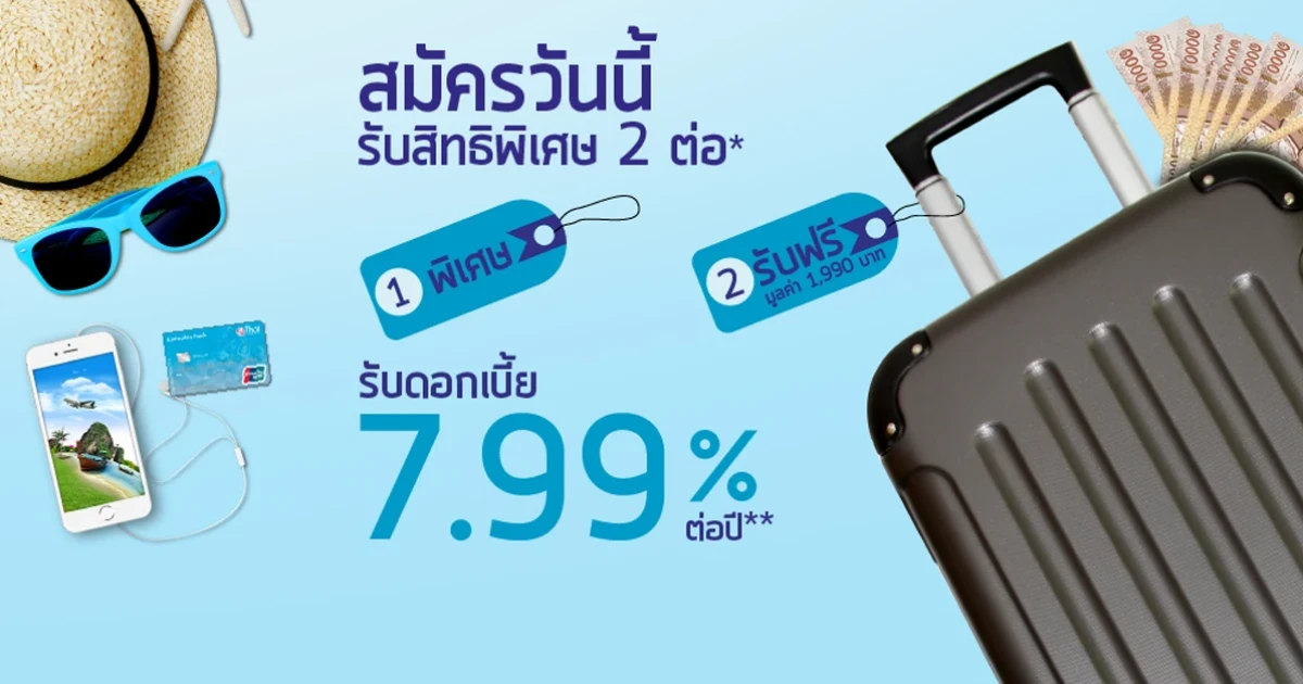 | ต่อที่ 1 รับอัตราดอกเบี้ยพิเศษต่อปี สำหรับ 3 รอบบัญชีแรก | ต่อที่ 2 รับฟรี กระเป๋าล้อลากขนาด 18 นิ้ว มูลค่า 1,990 บาท | ||