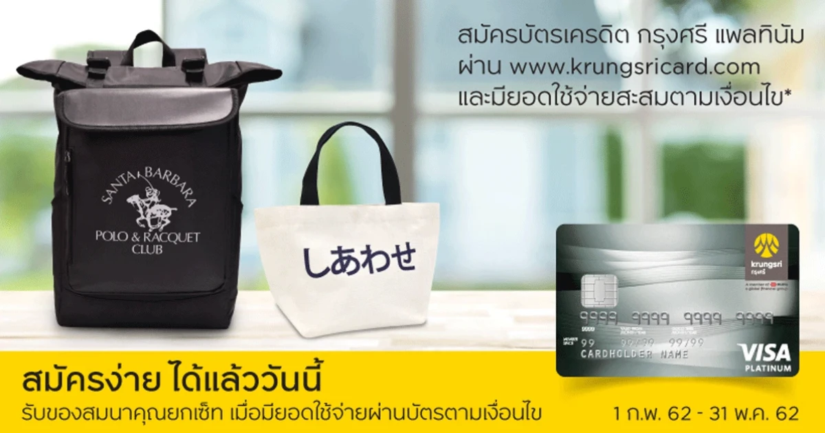 บัตรเครดิตกรุงศรี แพลทินัม สมัครวันนี้ รับของสมนาคุณยกเซ็ต