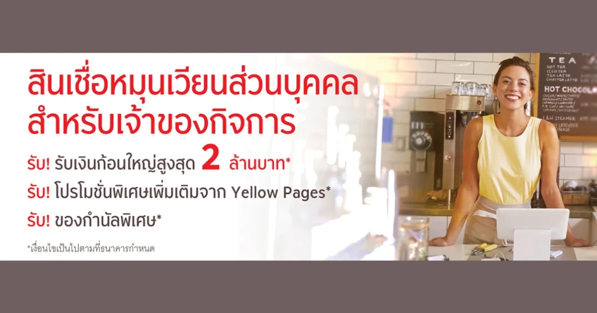 - Yellow Pages จะเป็นผู้ติดต่อกลับลูกค้าตามข้อมูลที่ให้ไว้กับธนาคารภายใน 60 วัน นับจากวันที่ลูกค้าได้รับแจ้งผลการอนุมัติสินเชื่อจากธนาคารเพื่อขอรายละเอียดการลงโฆษณาและประชาสัมพันธ์ธุรกิจให้กับลูกค้า