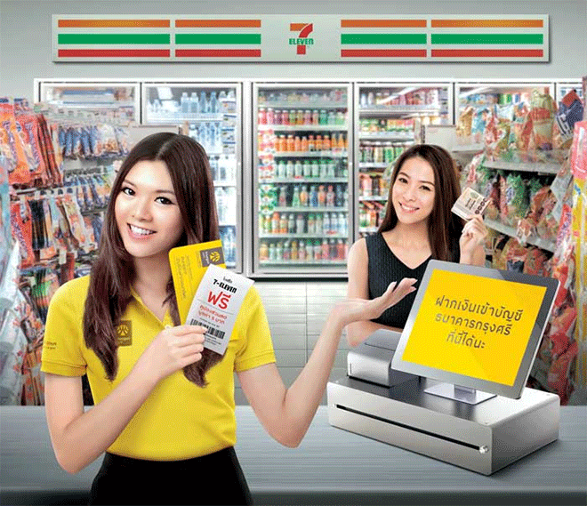 ฝากเงินเข้าบัญชีธนาคารกรุงศรีที่ 7-Eleven รับฟรี คูปองส่วนลด 5 บาท