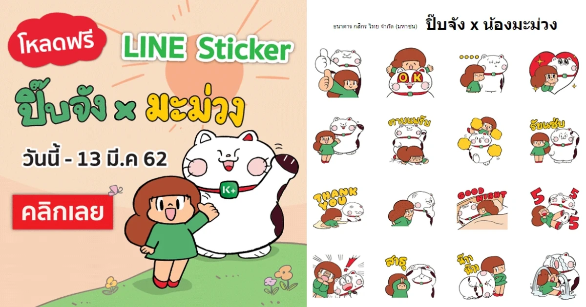 กดเพิ่มเพื่อน KBank Live รับสติกเกอร์ ปิ๊บจังxน้องมะม่วง ฟรี! ตั้งแต่วันนี้ถึง 13 มีนาคม 2562