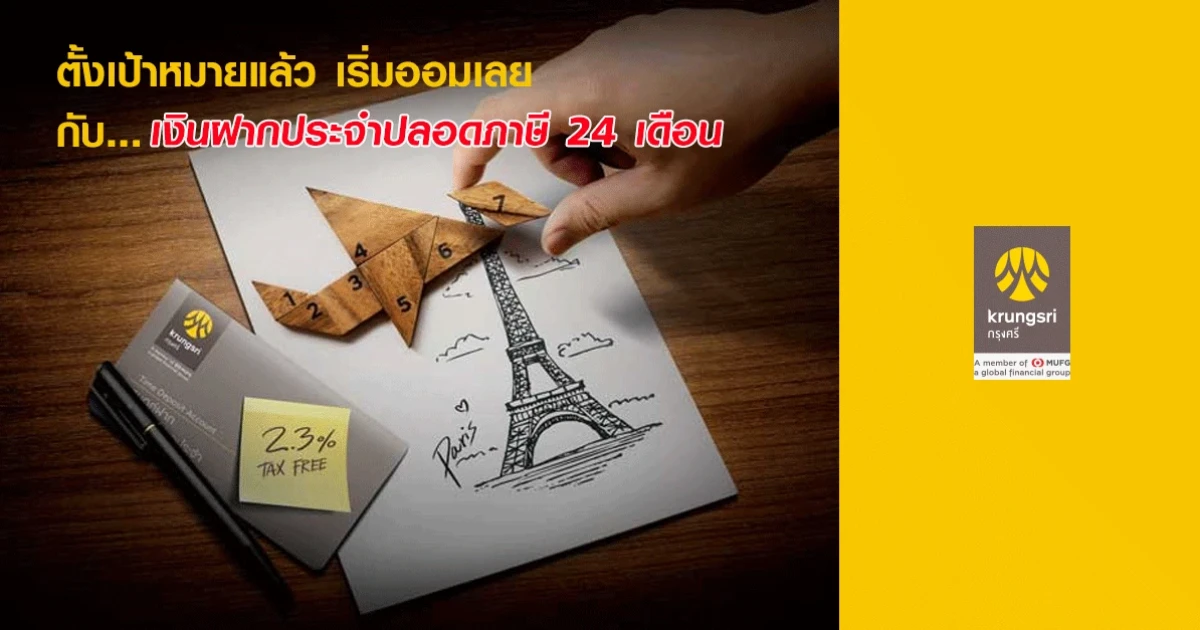 ตั้งเป้าหมายแล้วเริ่มออมเลยกับ เงินฝากประจำปลอดภาษี 24 เดือน จาก ธ.กรุงศรี อัตราดอกเบี้ย 2.30% ต่อปี
