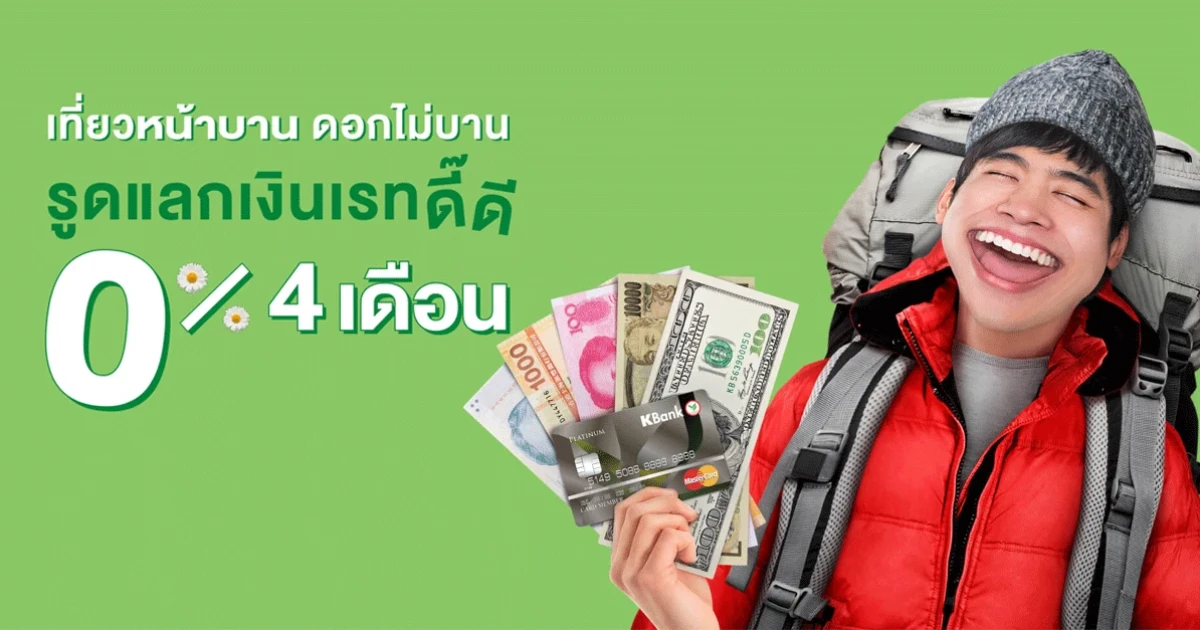 บัตรเครดิตกสิกรไทย ให้คุณเที่ยวหน้าบาน ดอกไม่บาน รูดแลกเงินเรทดี๊ดี 0% 4 เดือน