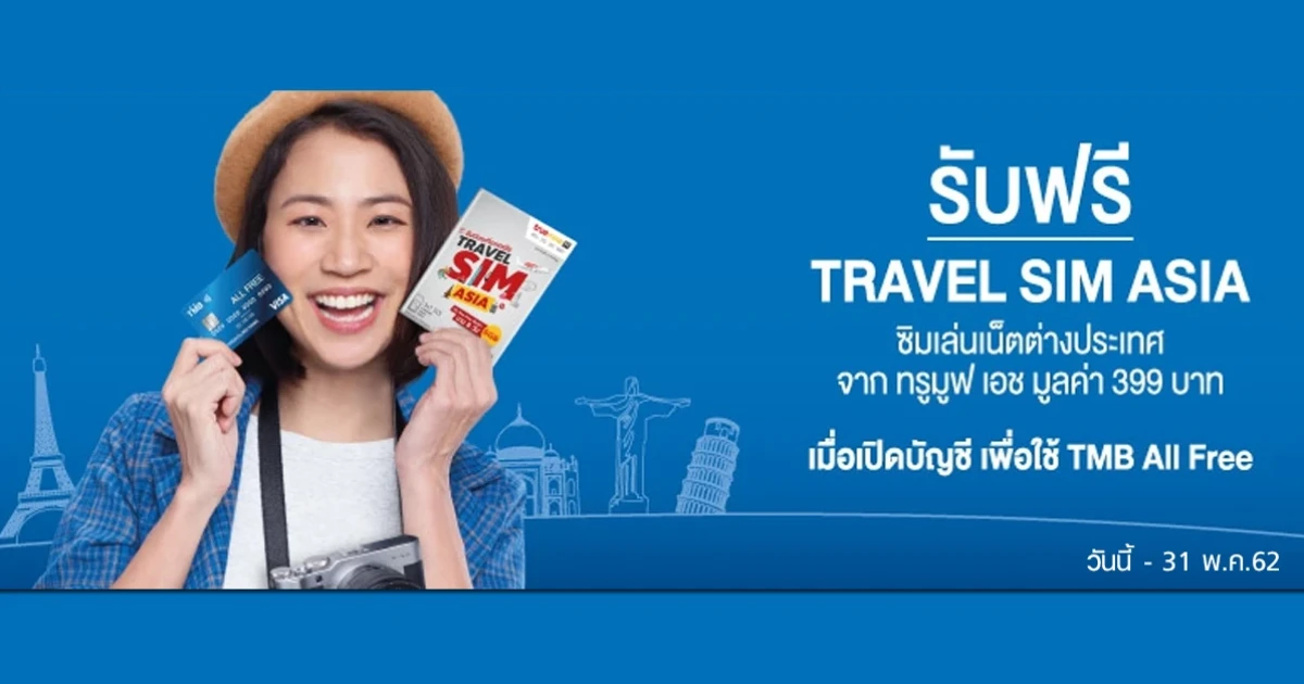 เปิดบัญชี ทีเอ็มบี ออลล์ ฟรี พร้อมบัตรเดบิต รับฟรี ทรูมูฟ เอช TRAVEL SIM ASIA มูลค่า 399 บาท