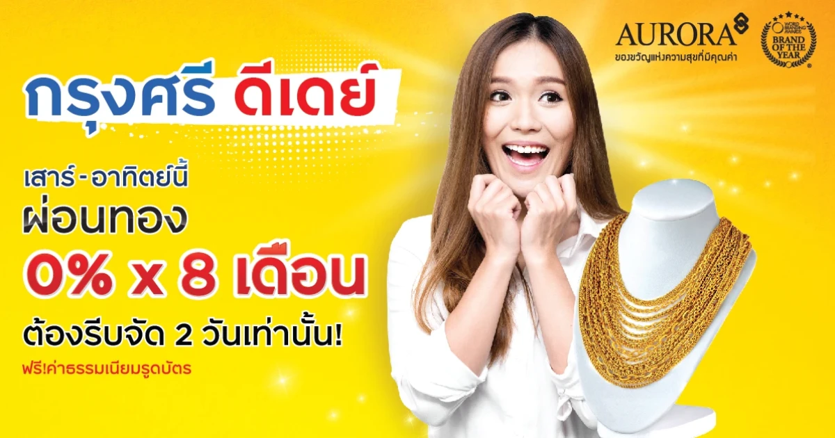 2 วันเท่านั้น!! กรุงศรี ดีเดย์ บัตรเครดิตในเครือกรุงศรี ผ่อนทองรูปพรรณที่ Aurora 0% นาน 8 เดือน