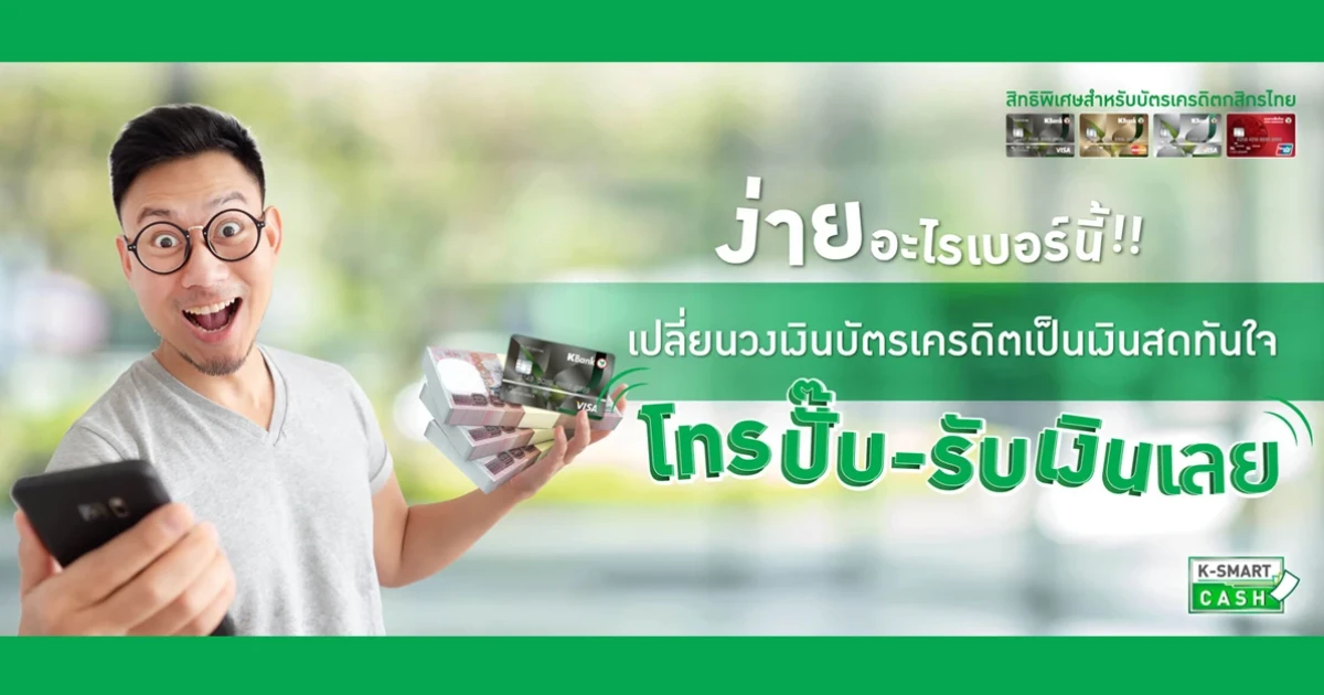 KBank Smart Cash เงินสดทันใจ...โทรปั๊บรับเงิน เปลี่ยนวงเงินคงเหลือบัตรเครดิตกสิกรไทยเป็นเงินก้อนฟินๆ เข้าบัญชี