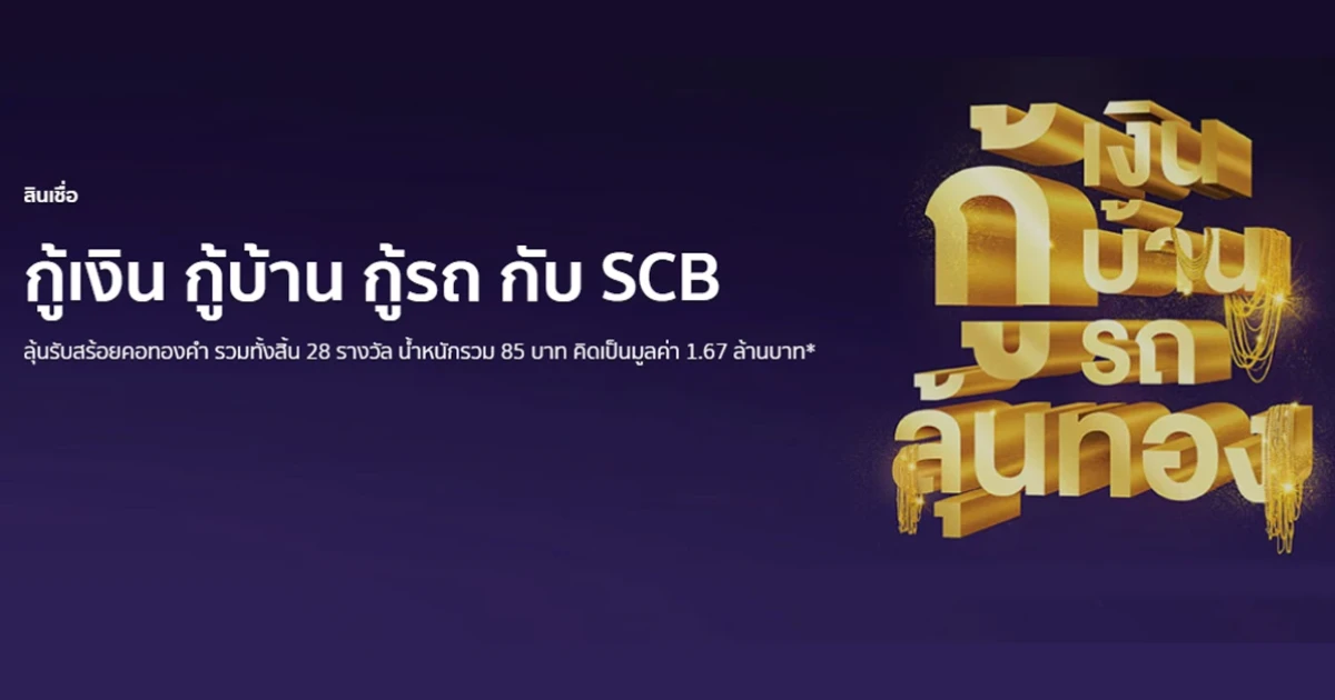 กู้เงิน กู้บ้าน กู้รถ กับ SCB ลุ้นรับสร้อยคอทองคำ วันนี้ - 30 มิถุนายน 2562