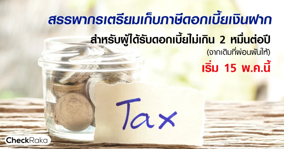 สรรพากรเตรียมเก็บภาษีดอกเบี้ยเงินฝาก สำหรับผู้ได้ดอกเบี้ยไม่เกิน 2 หมื่นต่อปี เริ่ม 15 พ.ค. นี้