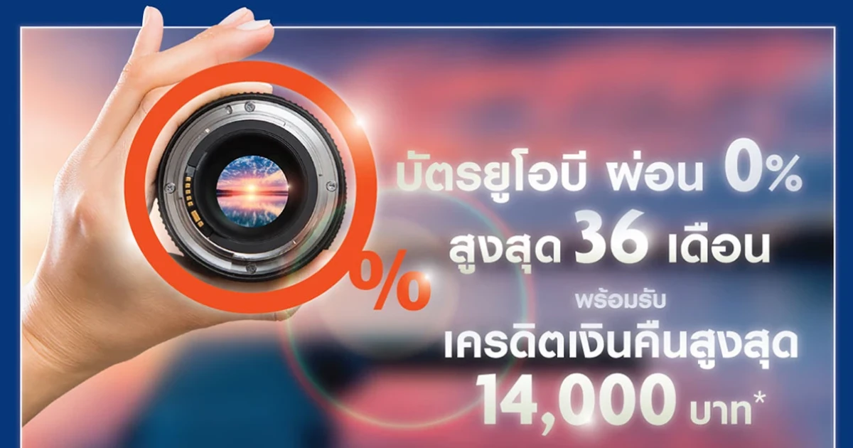 เลือกผ่อน 0% นานสูงสุด 36 เดือน พร้อมรับเครดิตเงินคืนสูงสุด 14,000 บาท เมื่อผ่อนชำระกล้อง ผ่านบัตรเครดิตยูโอบี หรือวงเงินยูโอบี แคชพลัส