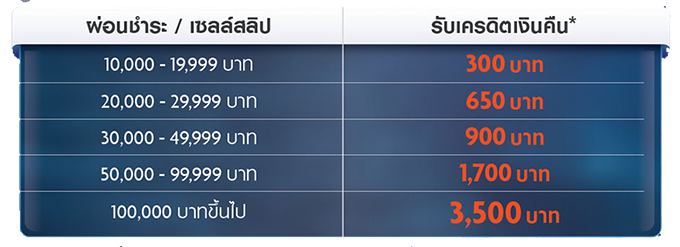 - ยอดเครดิตเงินคืนนี้ไม่สามารถแลกหรือเปลี่ยนเป็นเงินสด หรือโอนให้ผู้อื่นได้