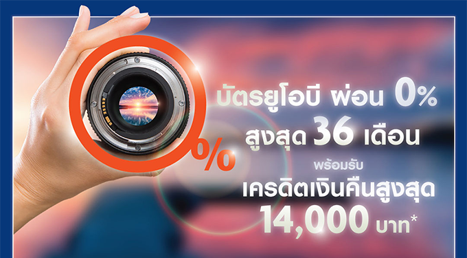 บัตรยูโอบี ผ่อนชำระกล้อง 0% สูงสุด 36 เดือน พร้อมรับเครดิตเงินคืนสูงสุด 14,000 บาท วันนี้ - 30 มิ.ย. 62
